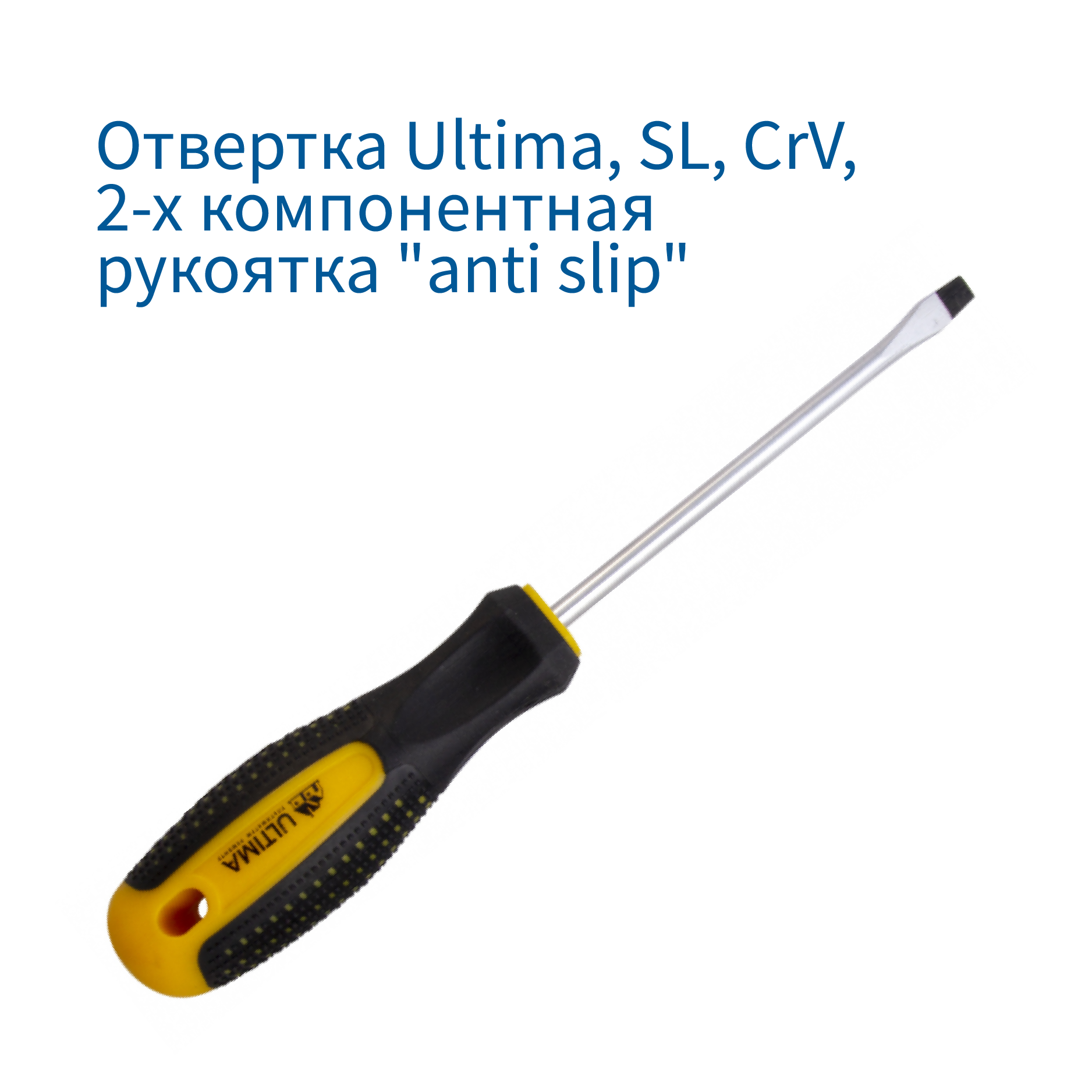 Крестовая и шлицевая отвертки Ultima (Ультима) из закаленной хромванадиевой стали с намагниченным наконечником и противоскользящей рукояткой подойдут для большинства винтов различных форм и размеров.